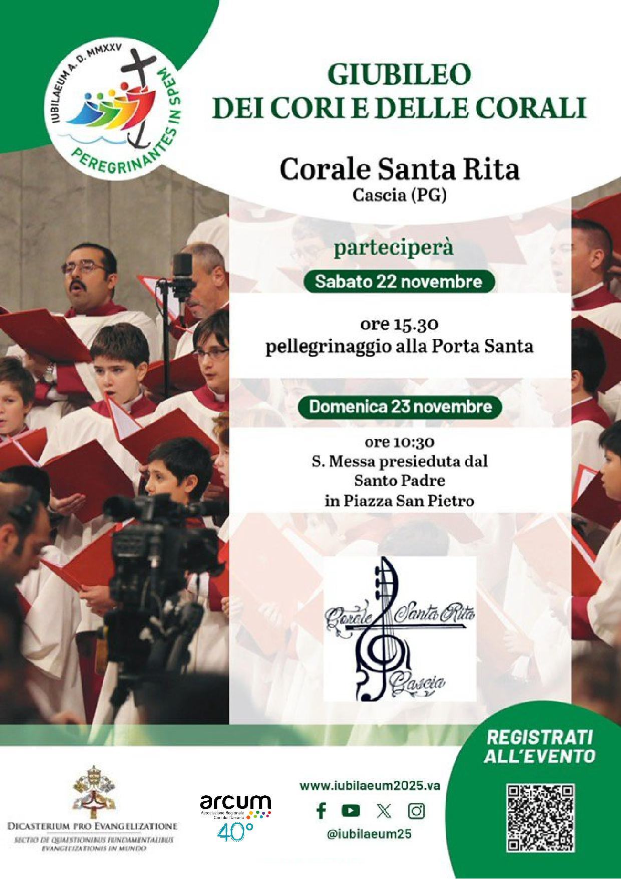 Le voci dell’Umbria saranno protagoniste a Roma il 22 e 23 novembre 2025 per il Giubileo dei Cori e delle Corali, evento dell’Anno Santo “Pellegrini di speranza” promosso dal Dicastero per l’Evangelizzazione.