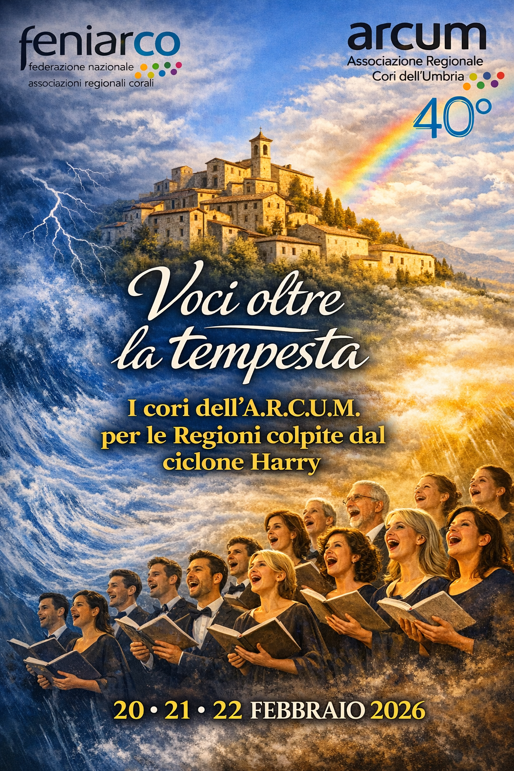 Dal 20 al 22 febbraio 2026, le voci dei cori umbri si uniranno in un grande abbraccio corale a sostegno delle regioni colpite dal ciclone Harry.